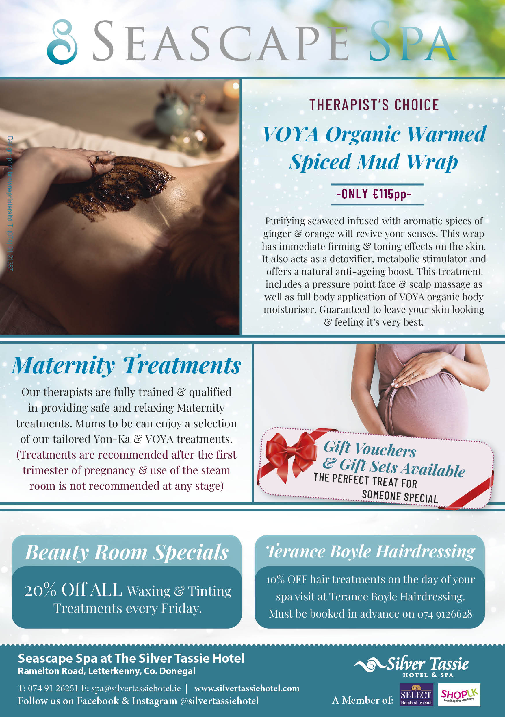 For more information or bookings in the seascape spa Ireland please contact us by email spa@silvertassiehotel.ie or phone us on + 353 (0) 74 91 26251.